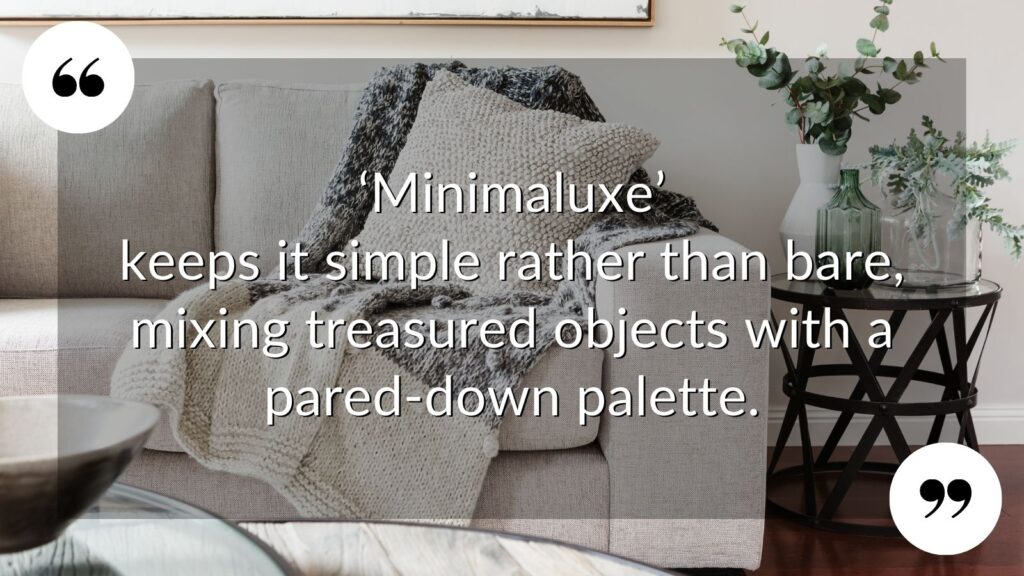 If you find minimalism too sparse and maximalism too much, perhaps minimaluxe is the style for you with its pared-back airy palette and pared-down display of your very most favourite things.